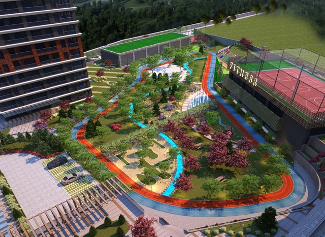 Bu doğal yaşam alanı içerisine ülkemizin dört bir yanında nadide fidanlar getirtip yeşerttik toplam da 15.000 m’ ye varan bu alan içerisinde aktf yaşam sürdürmenizi destekleyecek tüm detayları da kullandık.Tenis kortları,Basketbol ve Futbol Sahaları,Kaykay Pistleri Bisiklet ve Yürüyüş Parkurlarının yanı sıra Çocuklarınız doyasıya çocukluklarını yaşayabilsinler diye 0-6 yaş ve 6-12 yaş çocuklarınız için ayrı ayrı oyun sahaları ve çocuk bahçeleri yarattık